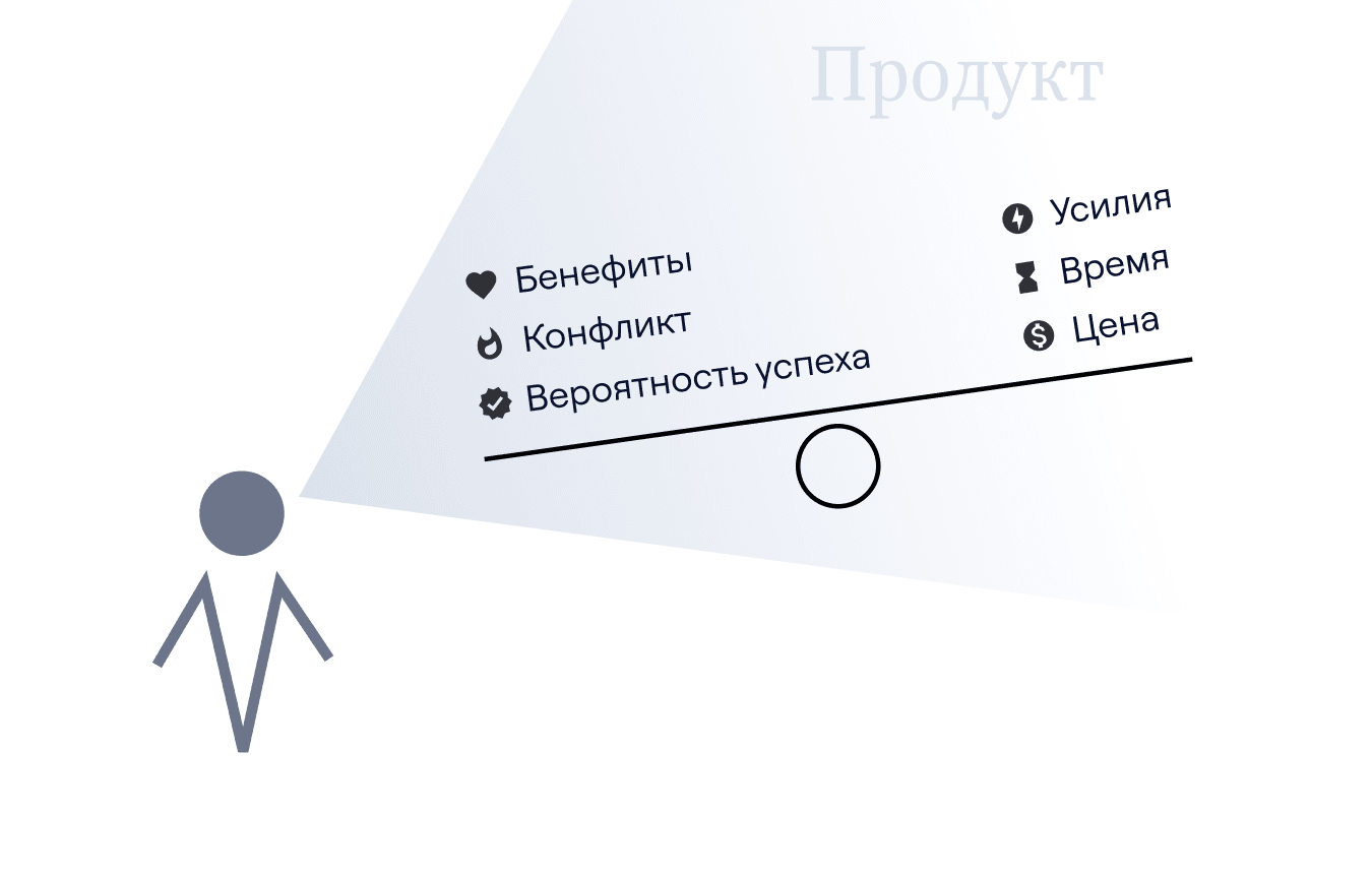 В голове покупателей нет точного калькулятора, скорее это баланс-борд, где определённые аргументы сдвигают вес в сторону покупки.