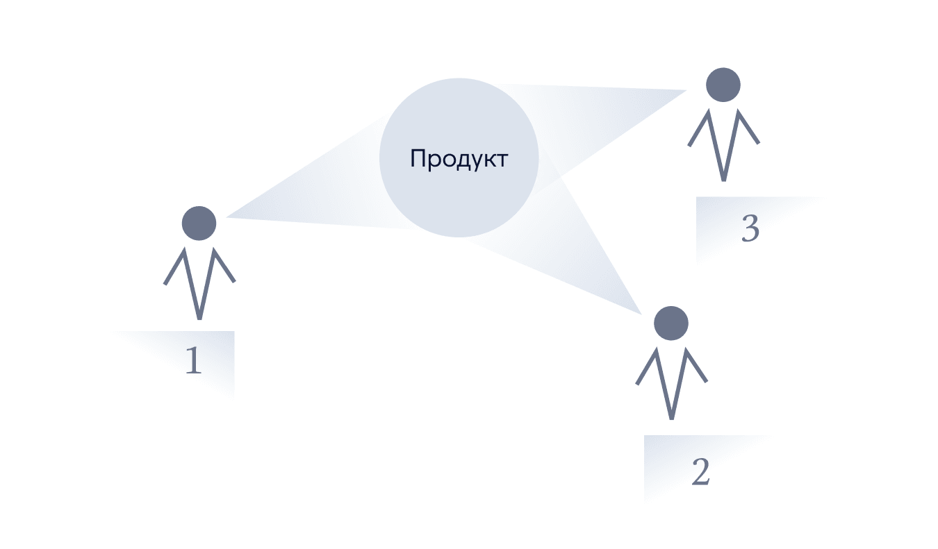 Группа людей 1, 2, 3 воспринимает продукт с разных позиций и в разной степени его понимает. Отсюда важный тезис: продукт по определению не может быть универсальным, он ценен для конкретной группы людей, иначе говоря — сегмента.