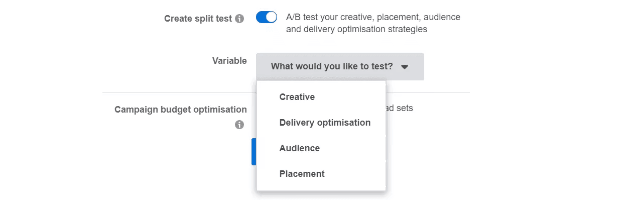 Обычно A/B-тестирование создается с помощью панели инструментов в разделе Ads Manager, чтобы использовать существующую рекламную кампанию или группу объявлений в качестве шаблона для теста.