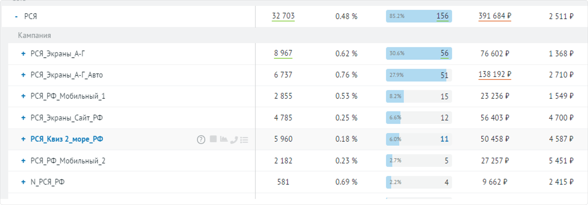 Антикейс по всем фронтам. Мы отключили рекламу на квиз до того момента, как в интерфейсе Марквиза появилась аналитика, которая позволила изучить причины низкой конверсии.