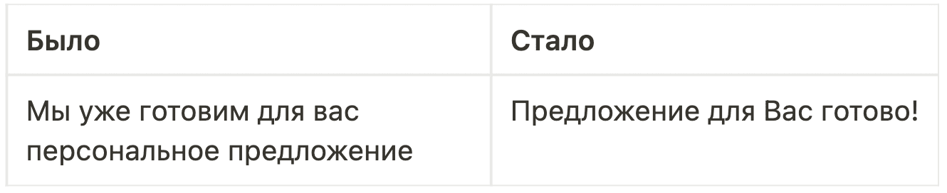 - Призыв в виде результата «Подборка готова» эффективнее, чем призыв в виде процесса «Подбираем».