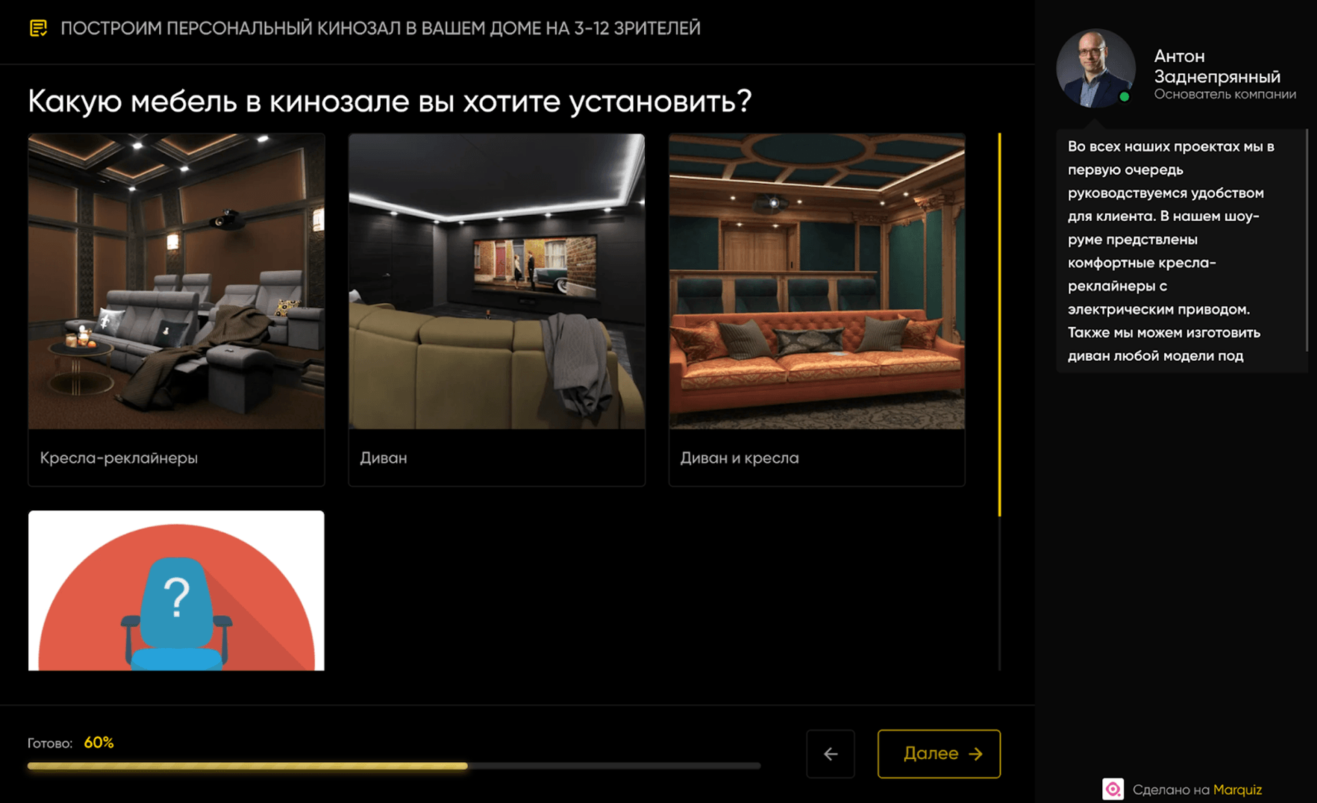 В примере с частными кинозалами предложить звукоизоляцию и мебель, чтобы увеличить чек, выглядит естественно