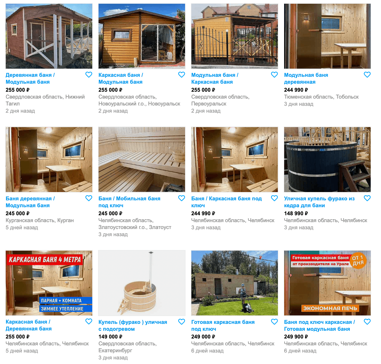 Компания только вышла на рынок, большого бюджета на продвижения не было, поэтому одной из площадок мы выбрали Авито. Здесь мы продвигали эконом-варианты бань за 250—280 тысяч рублей.