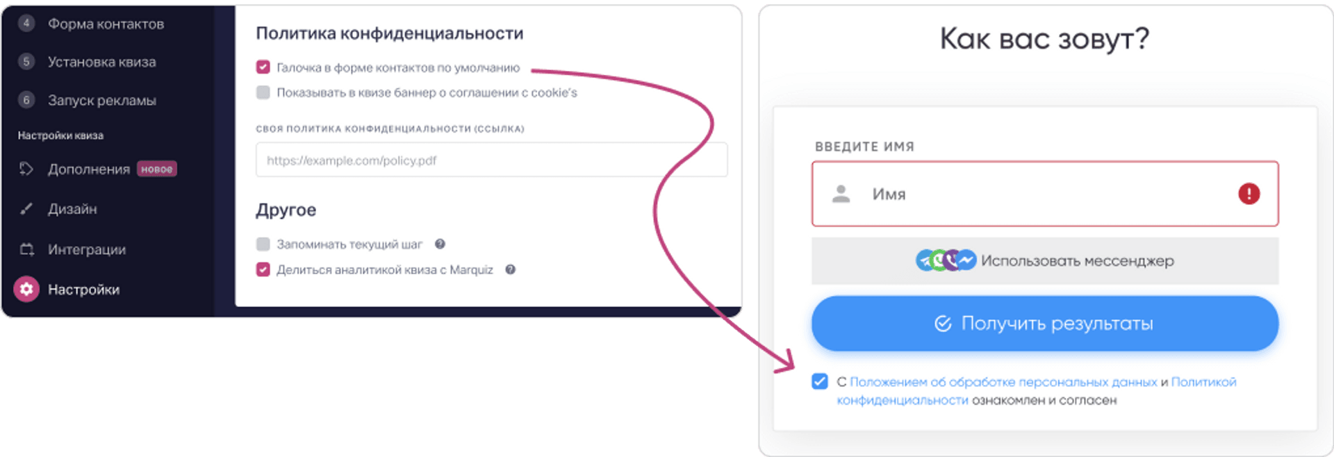 - какие персональные данные вы будете собирать в квизе;