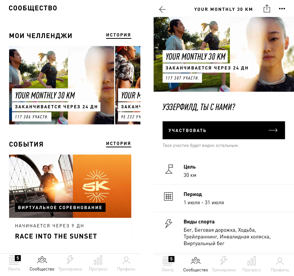 Через приложение Adidas Running можно принять участие в активных офлайн-мероприятиях. Они определяют место в рейтинге приложения