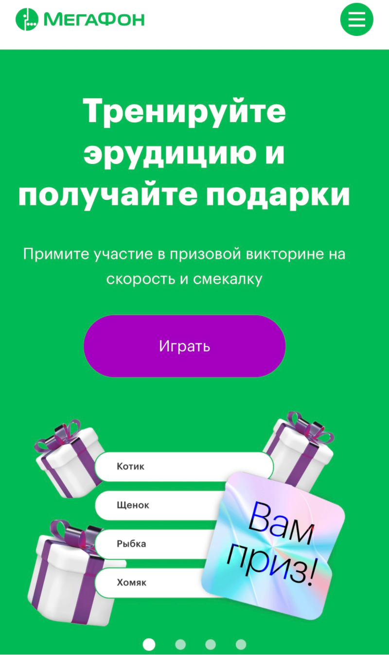 📲 Мег а Фон с помощью геймификации проверяет знания пользователей о своих тарифных планах, дополнительных услугах или новых продуктах. Задания в игре уже разогретой аудитории интересно предлагают подписаться на рассылку их телефонного оператора, чтобы быть в курсе актуальной информации и последних акций.