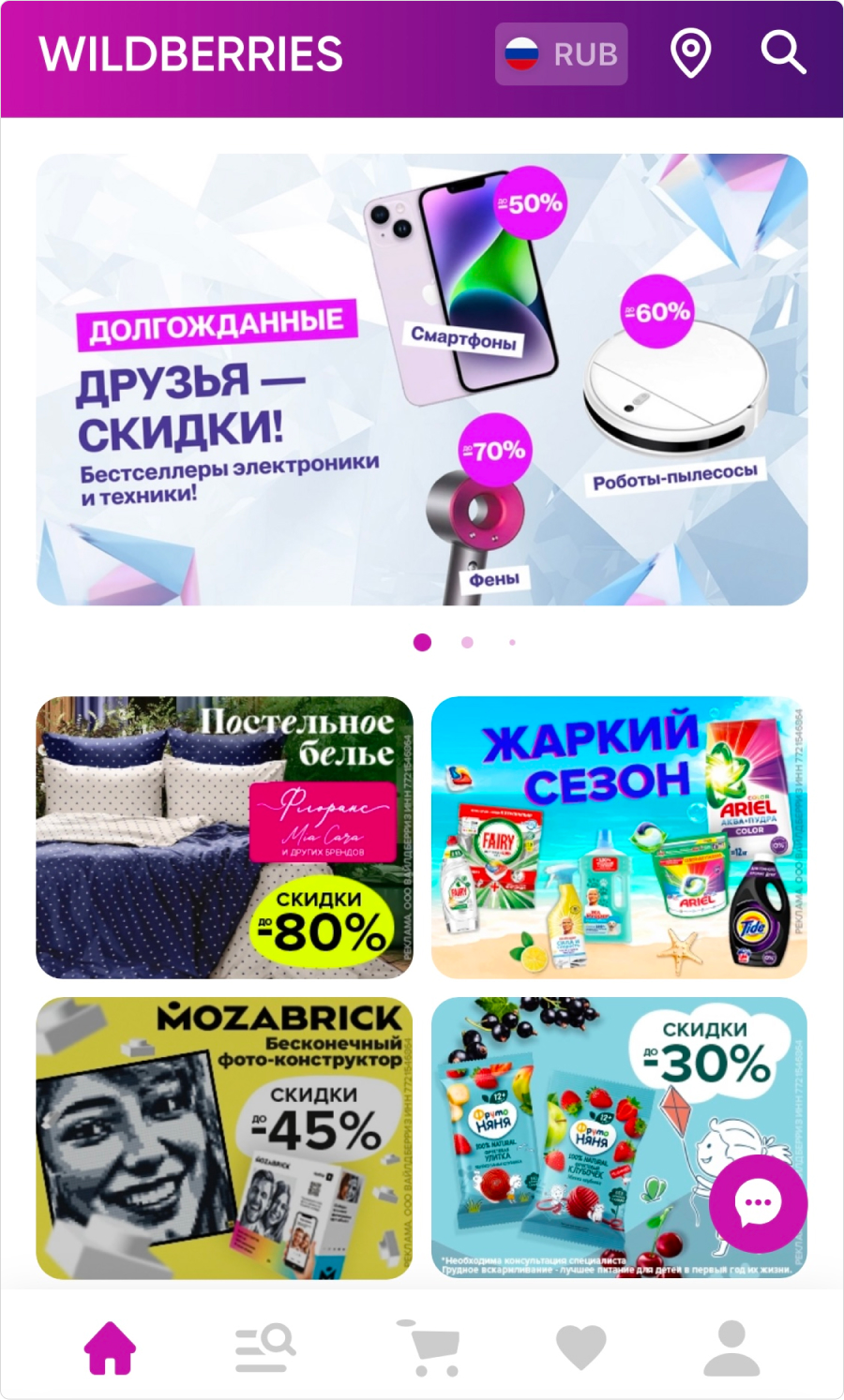 Уже первая страница Wildberries стимулирует покупателей участвовать в разных акциях