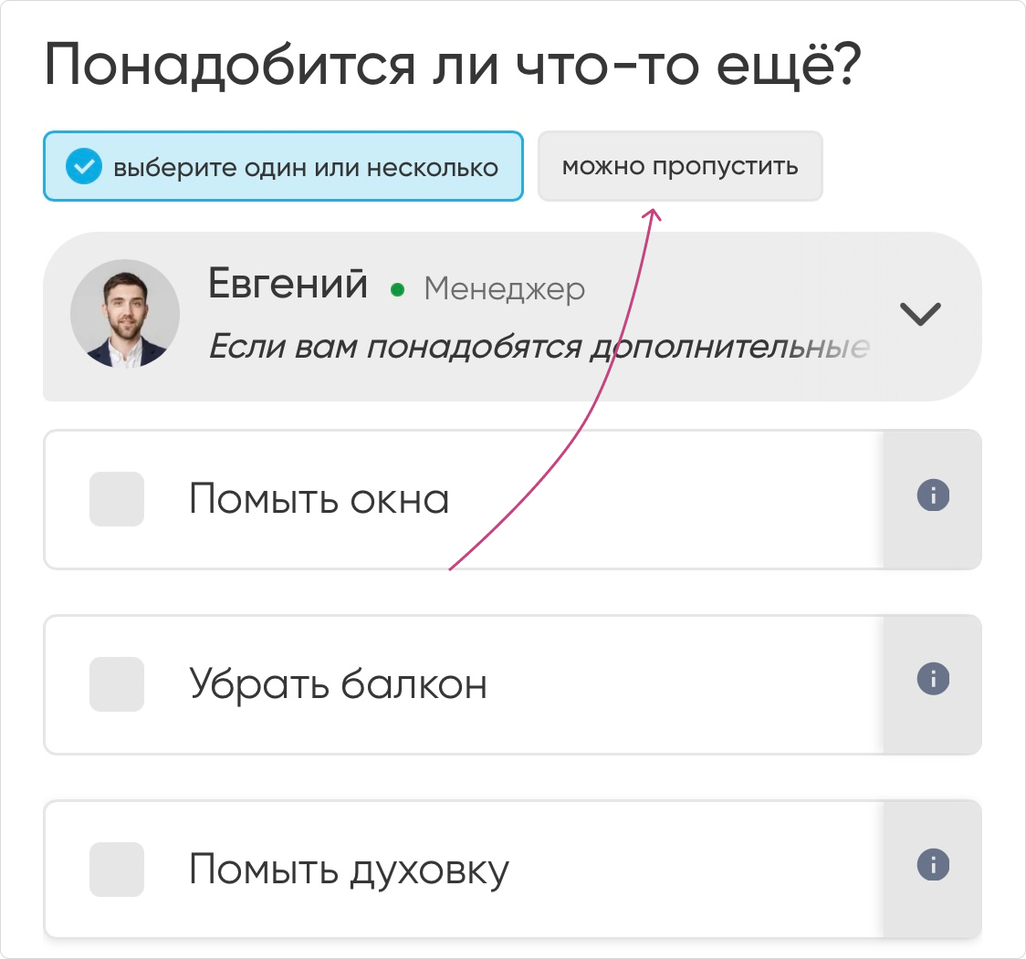 Чтобы узнать стоимость клининга, мы должны ответить на несколько вопросов. Нам обещали расчёт — нам дали расчёт