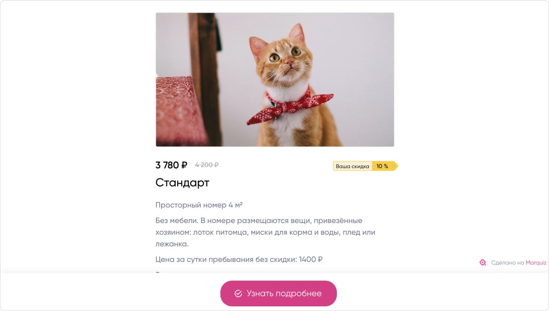 Разберём подробнее на примере бесплатного шаблона квиз-лендинга для зоогостиницы.