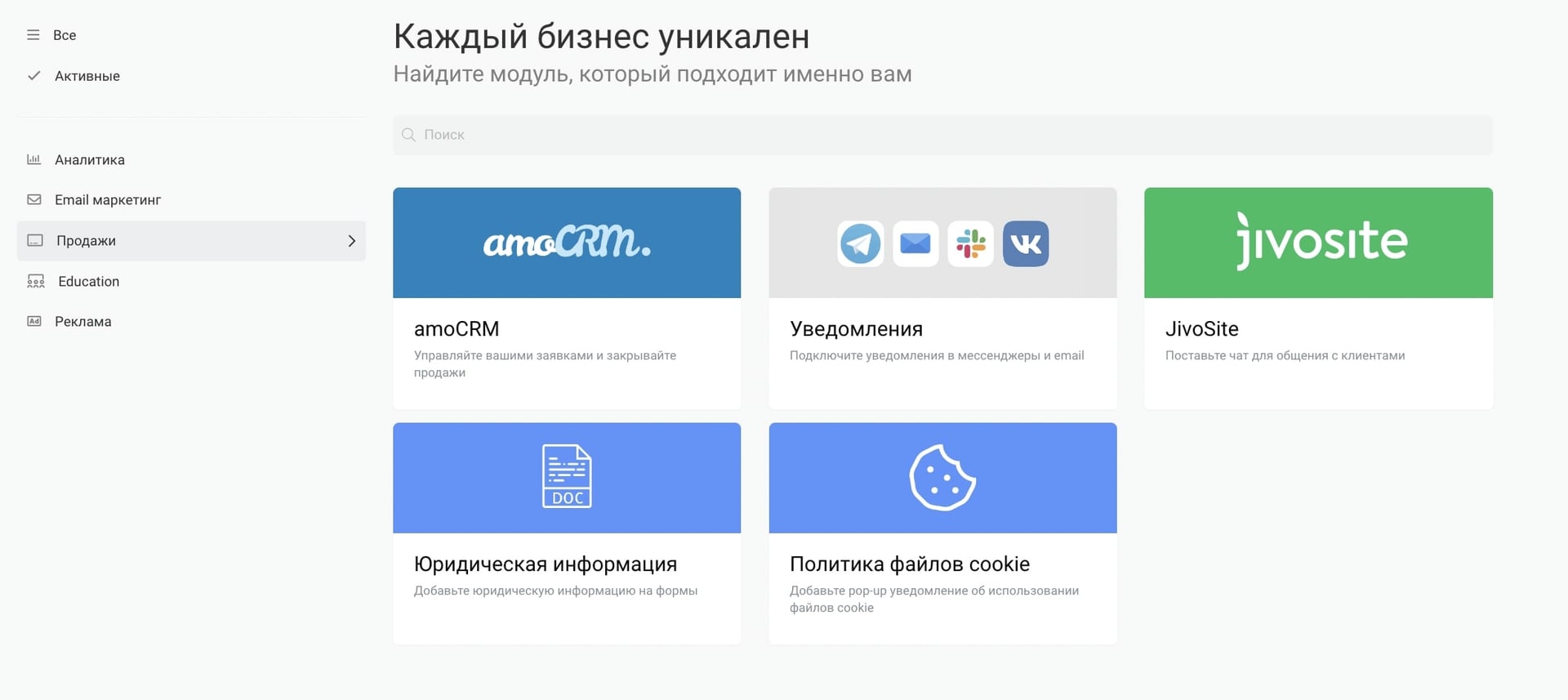 Конкретно в этом тарифе можно добавлять карточки товара и распределять их по коллекциям, добавлять варианты по цветам и размерам, опции с дополнениями в комплект.
