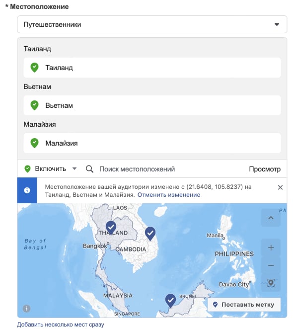 Ориентирован на местоположение целевой аудитории, позволяет оперировать территориальными критериями, такими как город, регион, страна или даже почтовый индекс или точка на карте с радиусом 500 метров.