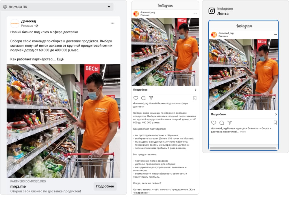 - Реклама в сторис и ВК-клипах (в Инстаграм, Фейсбук, ВКонтакте и на других платформах)