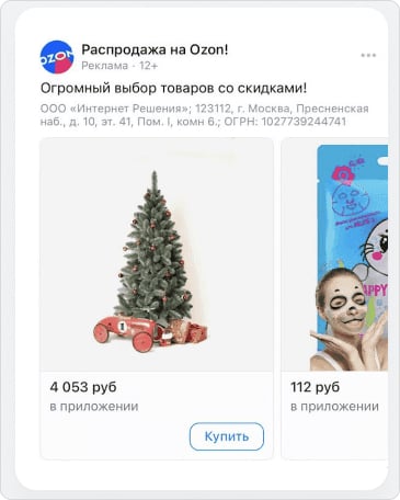 Пример использования каталога в рекламной кампании Оzon. Источник