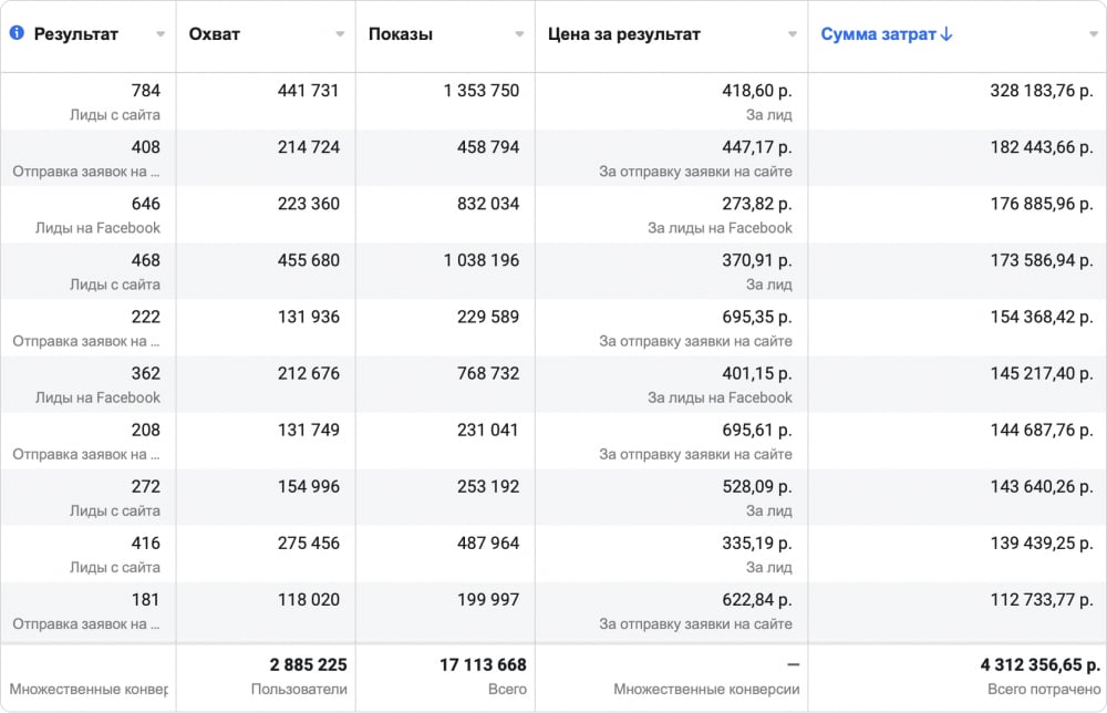 Пример из кейса по продаже автозапчастей: 3750 заявок по 50 рублей