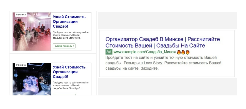 Рекламное объявление в формате квиза от агентства по организации свадеб в Google (КМС)