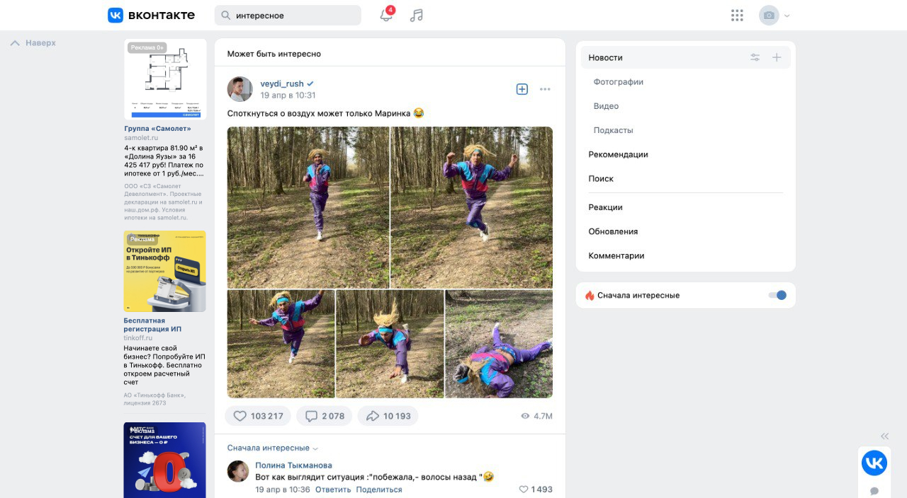 Пример рекламы в ленте ВКонтакте