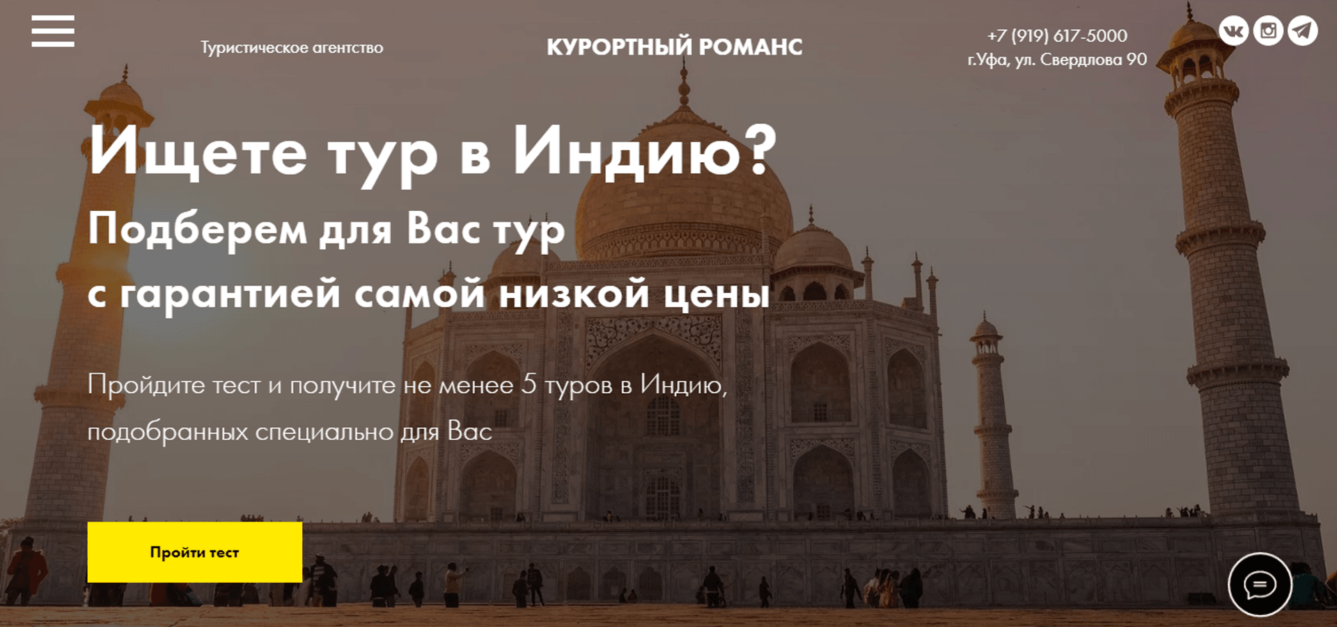 Вместо долгих поисков — тест и персональное предложение на сайте туристического агентства