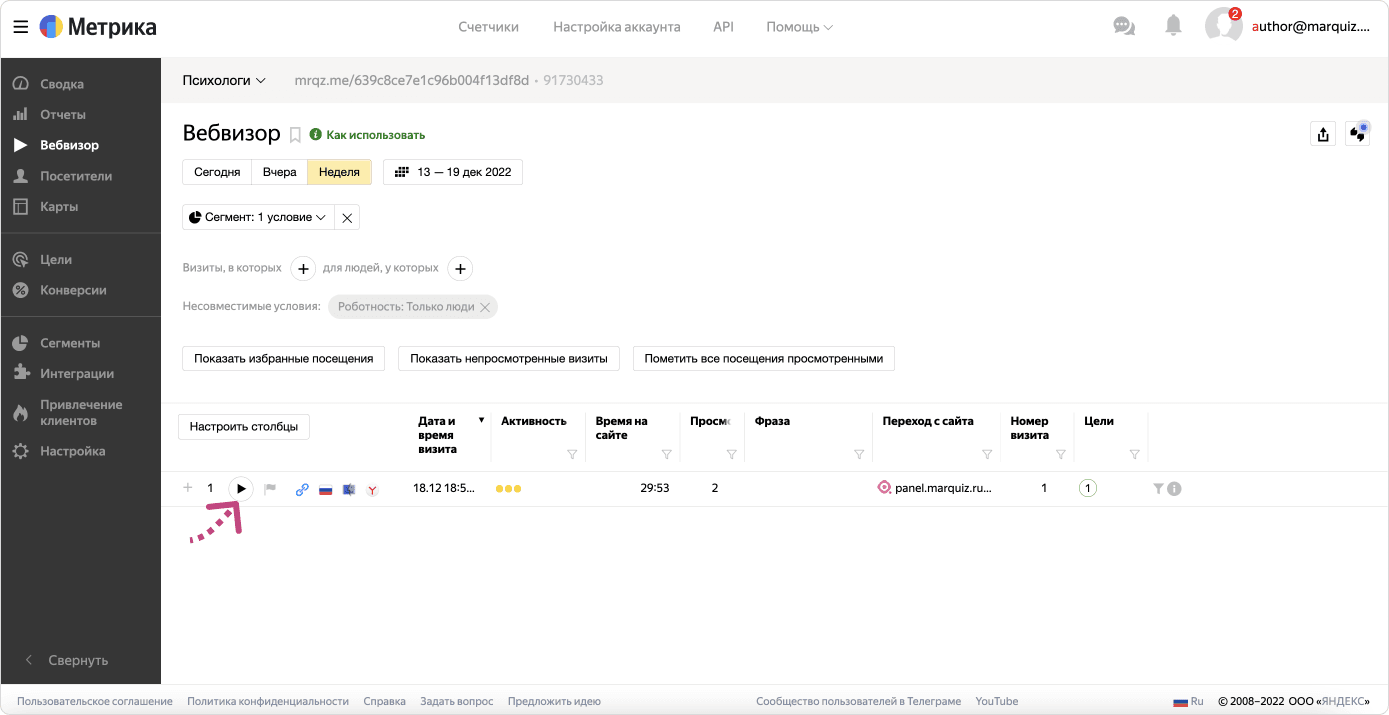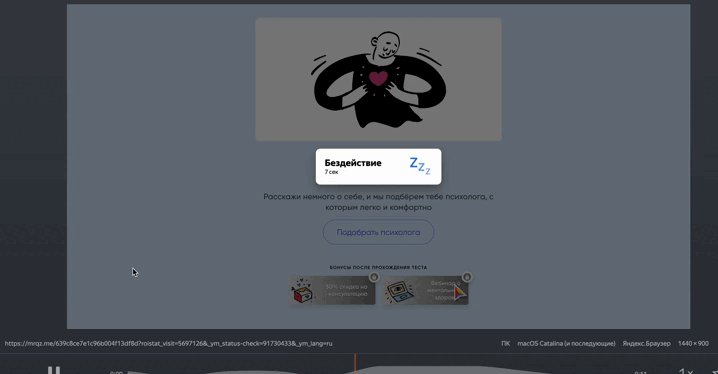 Посмотрим на квиз с психологами через Вебвизор. Для эксперимента кинули одну заявку.
