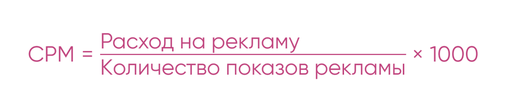 CPM = (общая стоимость рекламы / общее количество показов рекламного материала) × 1000