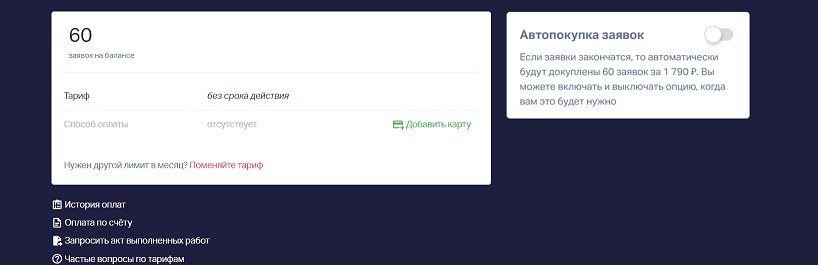 Автодокупка заявок в тарифе без срока действия