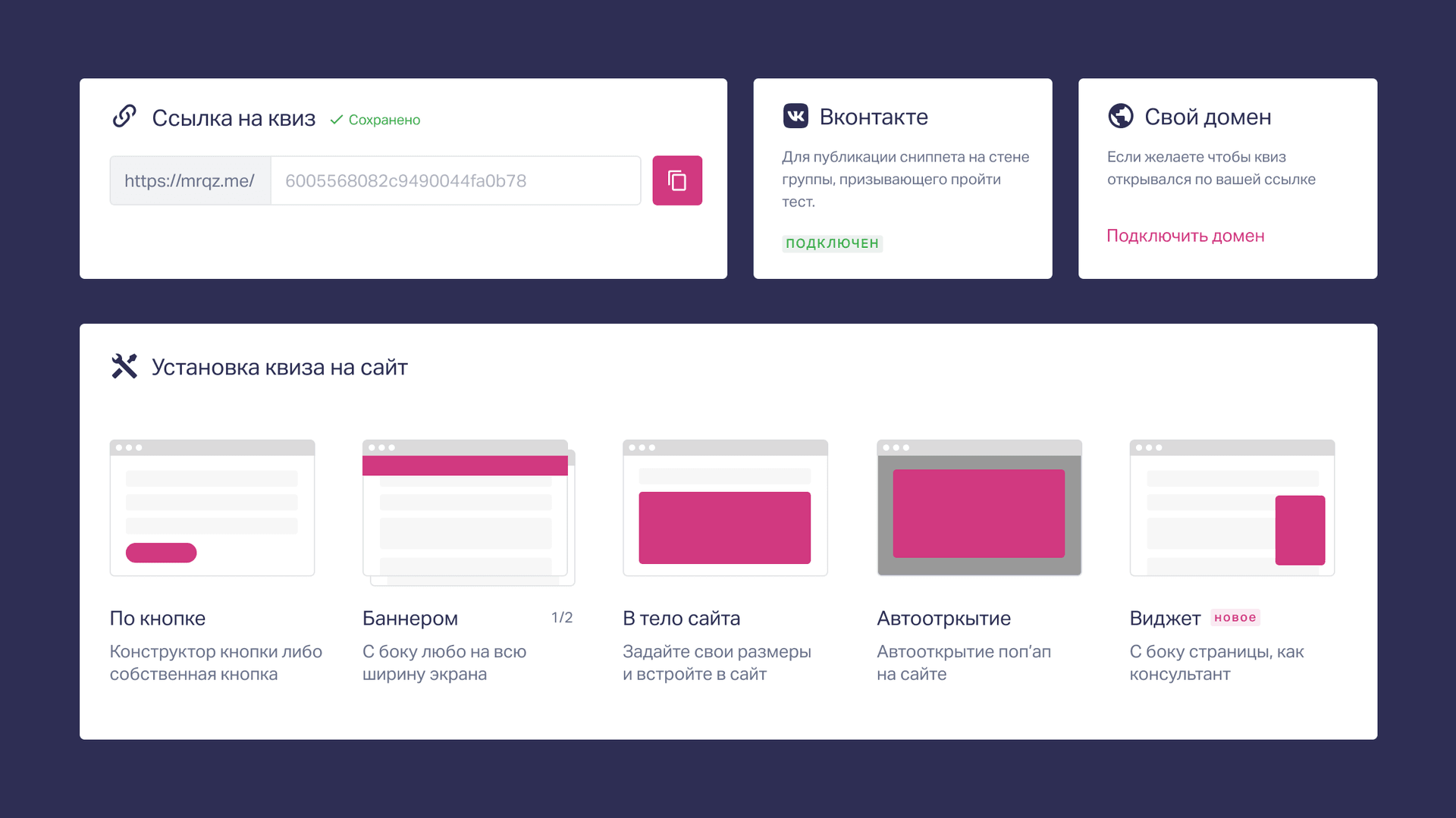 Обновили страницу установки квиза