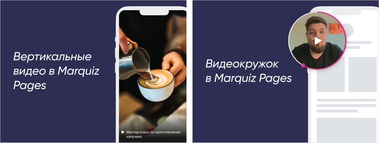 🧊 Теперь на Marquiz Pages можно загружать вертикальные видео из Reels*, YouTube Shorts, TikTok и добавлять видеокружочки, как в Телеграме.