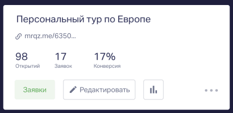 Теперь, когда мы подключили базовую статистику по каждому квизу, никуда не надо ходить — на карточке квиза в личном кабинете сразу вся инфа.