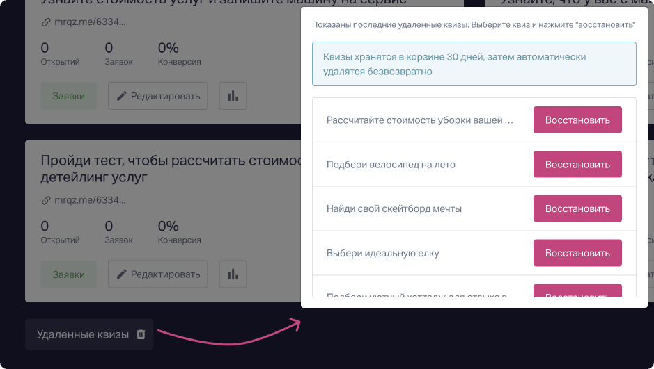 Сейчас это пффф, ерунда и не стоит беспокоиться, ведь неактуальные квизы, как котики, вальяжно отправляются спать в корзину на 30 дней😴. В случае чего, у них ещё будет шанс вернуться и показать себя в полной готовности, даже базовая статистика не слетит.