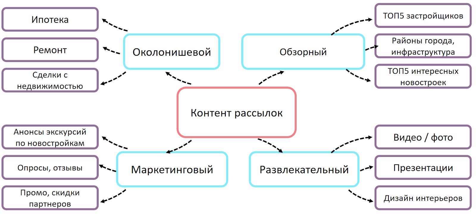 Цель: помочь клиенту быстрее найти подходящее жильё. Это, как правило, обзоры имеющихся объектов, подобранные специально либо под интересы клиента (то, что привлечет внимание с бОльшей вероятностью), либо новые объекты и ЖК, про которые подписчики могут ещё не знать.