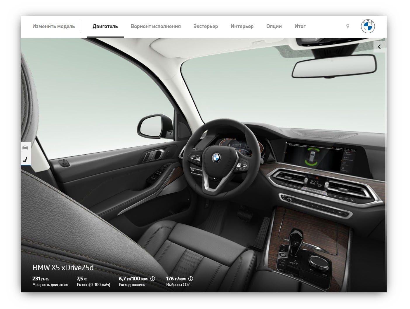 Так выглядит конфигуратор салона, внутри тоже есть обзор на 360 градусов