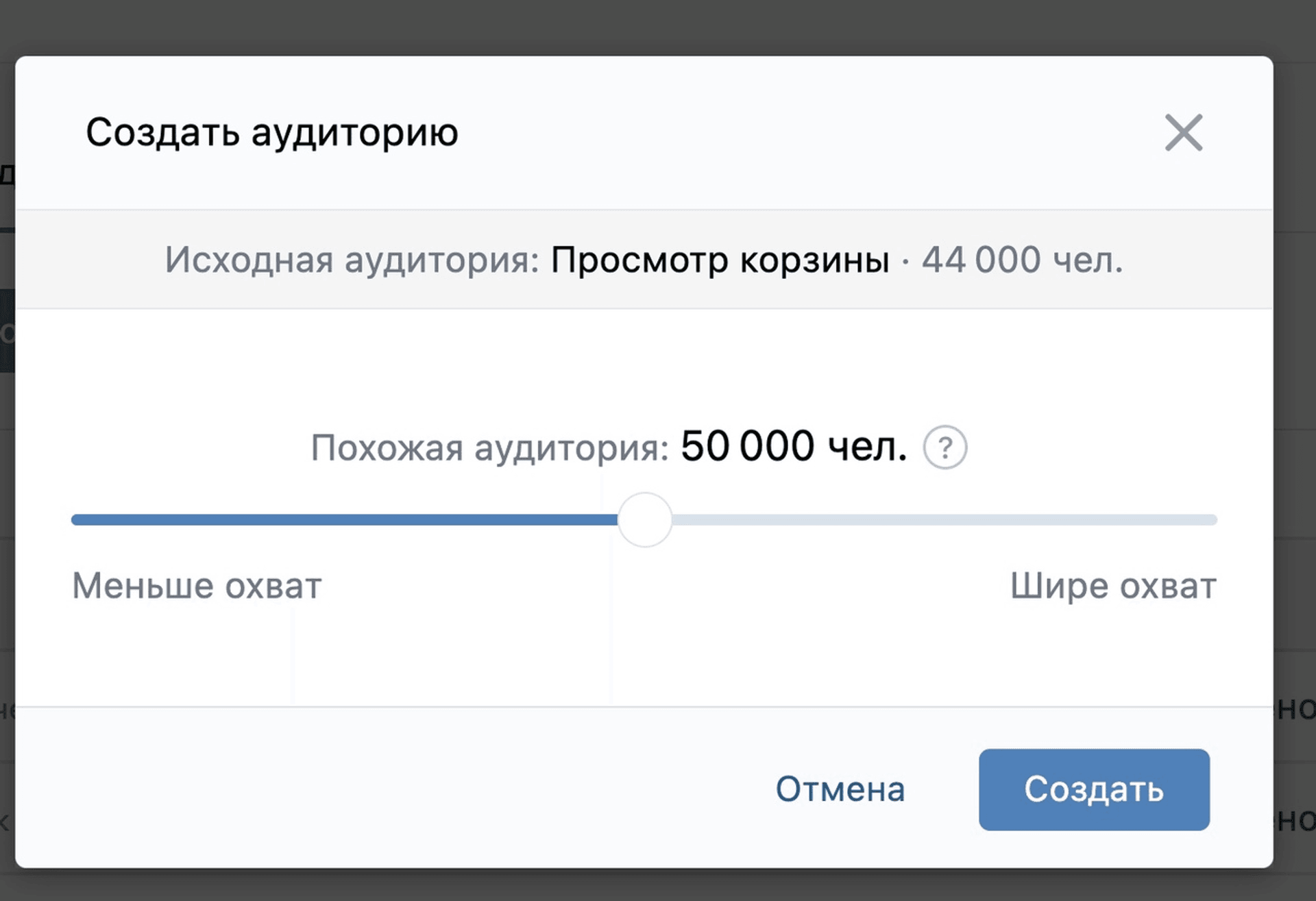 Пример возможного охвата по похожей аудитории из рекламного кабинета ВК