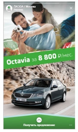 Новую рекламную кампанию запустили уже только на две аудитории: с интересом ŠKODA и Volkswagen. Цель поставили - конверсия. В креативах мы сделали упор только на сторис, так как именно этот формат приносил лучшие результаты в прошлом запуске. В итоге за два месяца работы (май - июнь 2019 г.) мы привлекли 103 заявки на покупку нового автомобиля ŠKODA Octavia по цене в 130 рублей. То есть, после перехода на КВИЗ-опросник нам удалось еще снизить стоимость заявки в 2 раза.