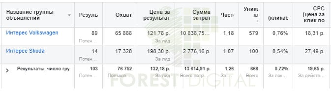 - и отдельно интересующиеся автомобилями Volkswagen. (Так как это один концерн, и по ценовому сегменту они схожи, у нас появилась гипотеза, что мы как раз сможем попасть в нужную аудиторию).