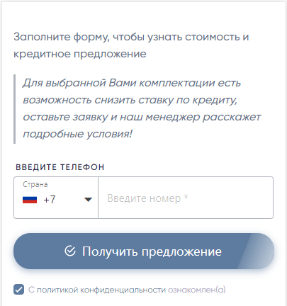 И в конце мы просили указать номер телефона, чтобы получить всю подробную информацию от менеджера по подходящей модели автомобиля.