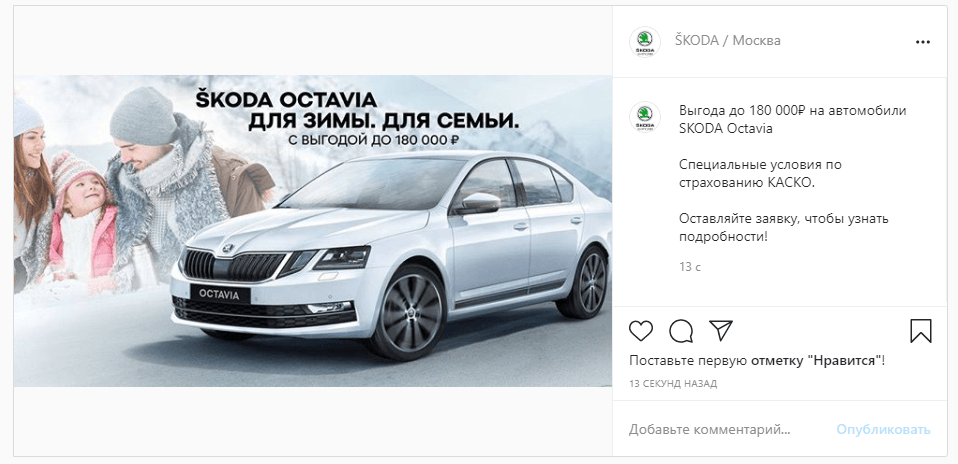Клиенту необходимо было привлечь заявки на покупку автомобиля ŠKODA Octavia. В качестве площадки для рекламной кампании были выбраны Instagram и Facebook. И обозначены следующие KPI: