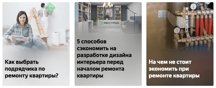 В рекламной кампании участвовали 3 этих публикации плюс несколько заголовков и карточек для теста. После определения лучших в плане кликабельности, мы оставили самые эффективные, а остальные отключили.