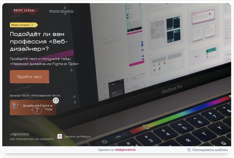 Игровой опрос в виде квиза подходит для прогрева, когда человек только начинает задумываться и изучать тему. Как простой первый шаг, а не продажа в лоб.