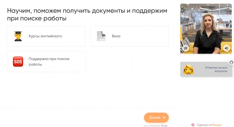 ✔️ Объяснить пользователю, зачем отвечать на вопросы и поддерживать по ходу квиза.