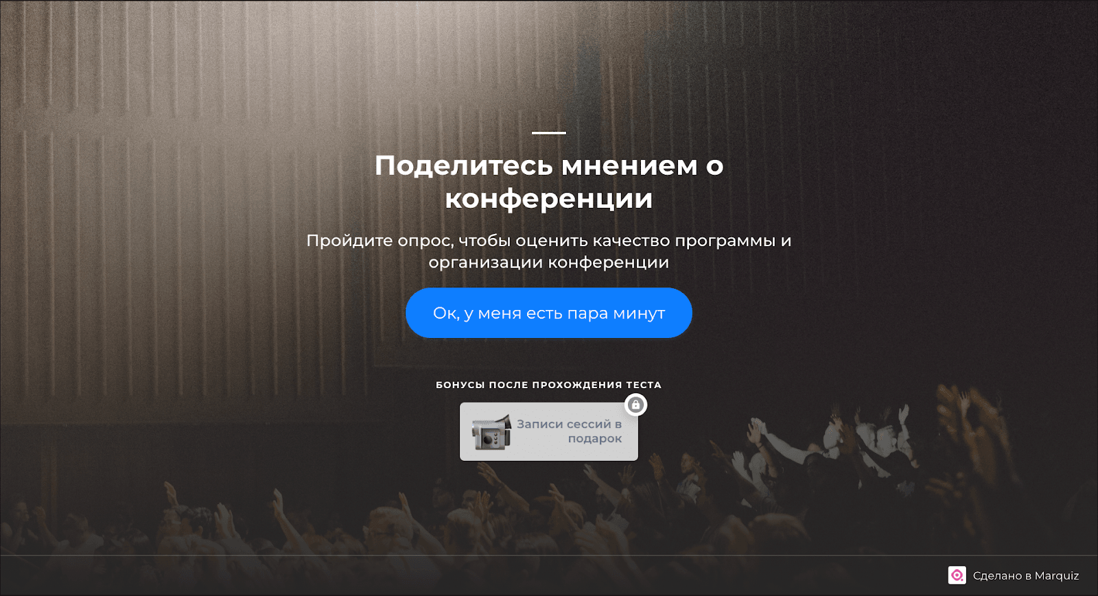 ❌ Это шаблон квиза, если поставить картинку с настоящего мероприятия, будет более убедительно