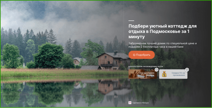 Текст на стартовой странице — это первые слова, которые мы говорим клиенту, чтобы заинтересовать пройти квиз. Как в холодных продажах — надо успеть в самом начале настроить на диалог. Нюансов в тексте много, посмотрим для примера три важных: