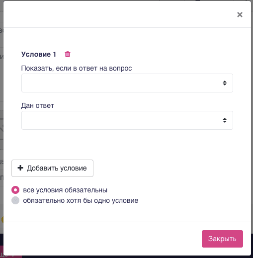 - Вы можете задать несколько условий для показа одного результата. В этом случае выбирайте ”все условия обязательны” или “обязатель хотя бы одно”