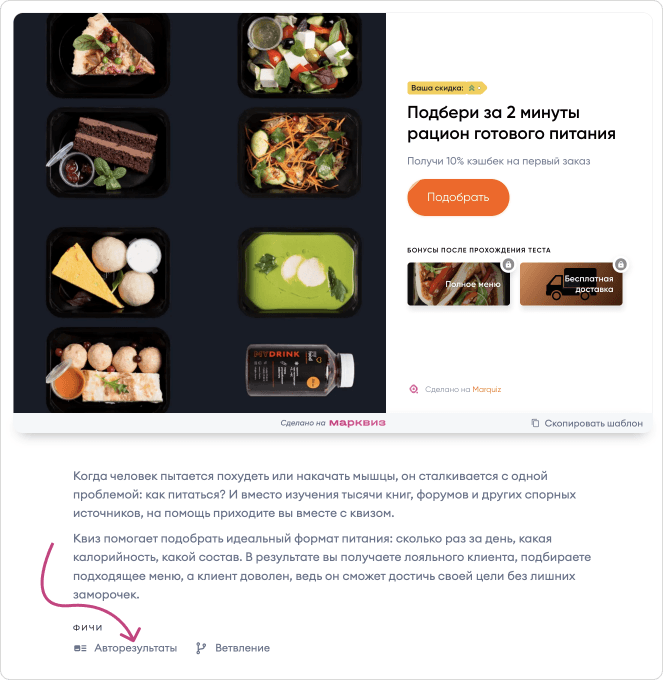 Например, шаблон квиза по подбору рациона здорового питания.