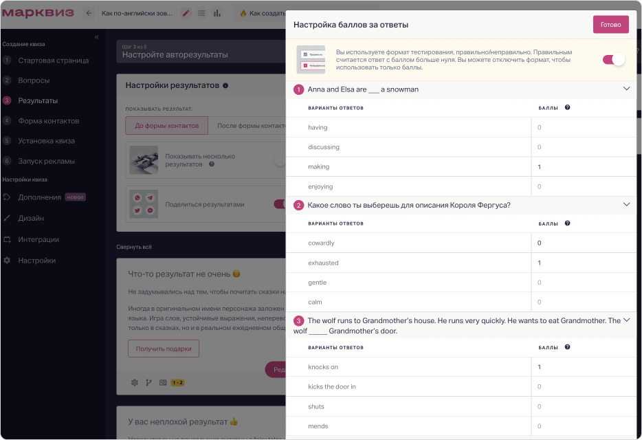 Смотрим, в чём же польза нескольких результатов в одном квизе, и тут же инструктируем, как настроить.