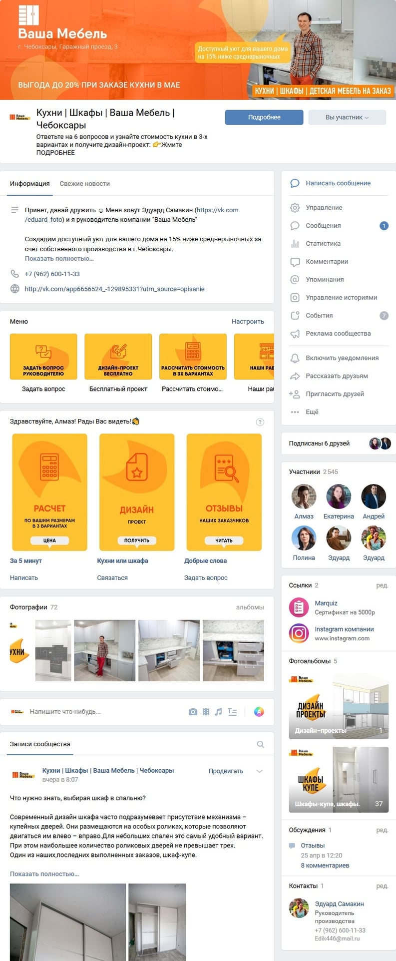 Потрачено 18648р в ВК и 15000р в Instagram за 3 месяца. С Instagram* тоже были заявки, но не так много. В результате общая выручка компании Ваша Мебель в несезон (январь февраль март) составила 902.300 рублей.