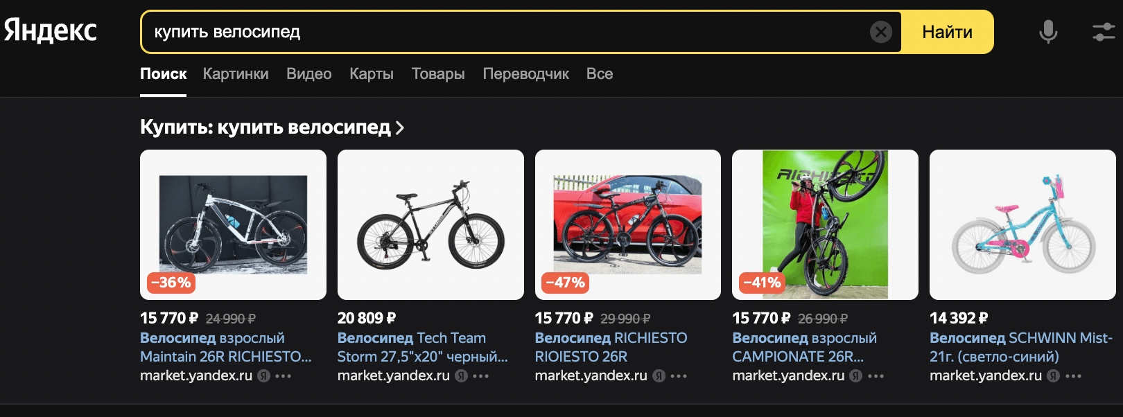 В Яндексе используются одно- или многотоварные баннеры. Яндекс Директ автоматически генерит смарт-баннеры из всего ассортимента товаров (фида) в карточку баннера. Кроме текстовых форматов и видеорекламы, для продвижения витрины также используются смарт-баннеры.
