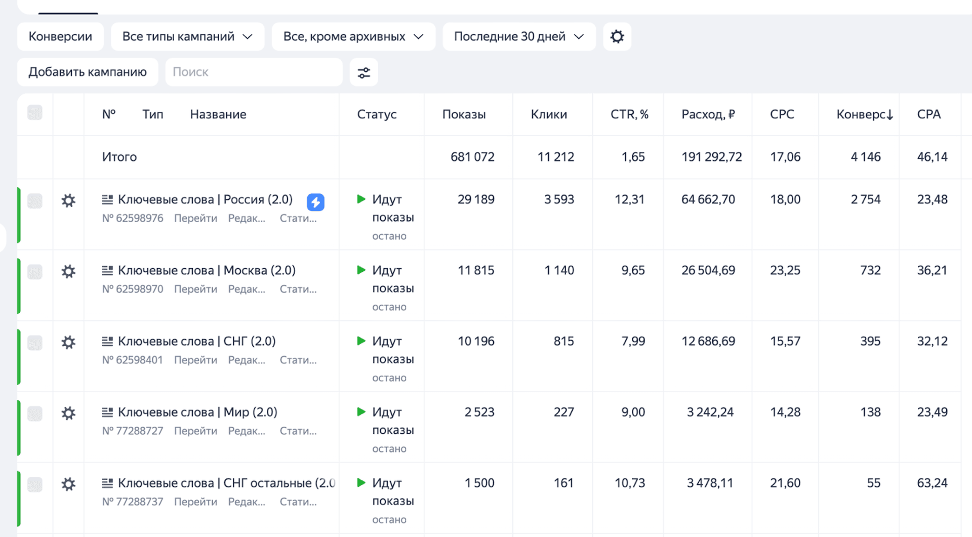 В России пока доступен для самостоятельной настройки и запуска только Яндекс Директ. Google можно подключить для международных клиентов через отдельные платформы, например, eLama, К50 или Promopult.
