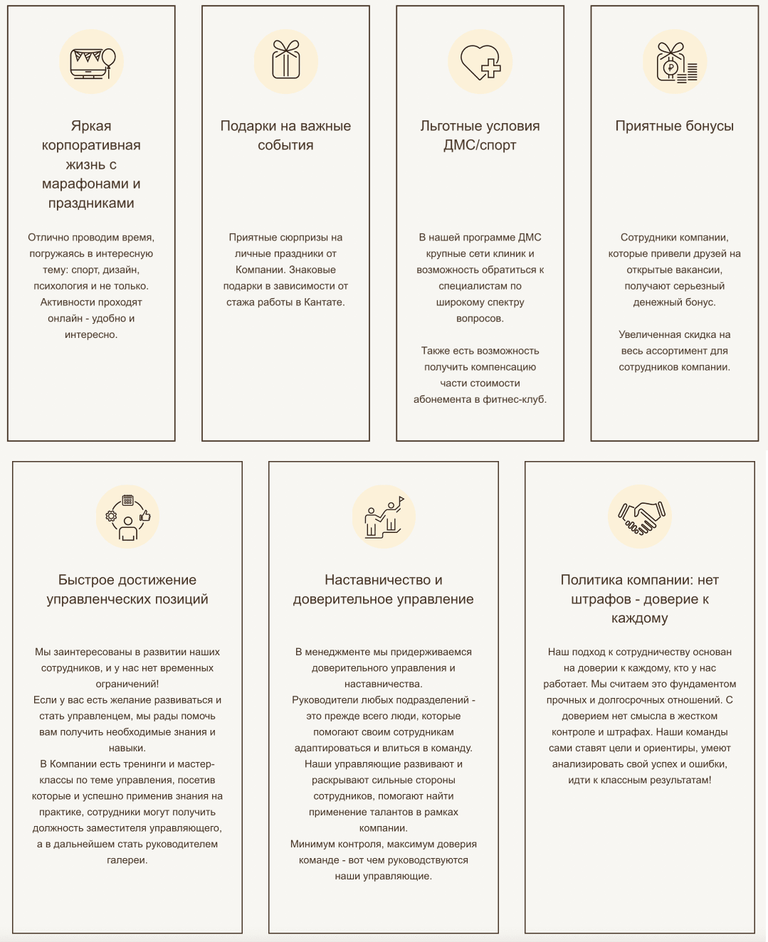 И чтобы сотрудники смогли поддерживать и разделять миссию, компания предлагает целый спектр разных бонусов: