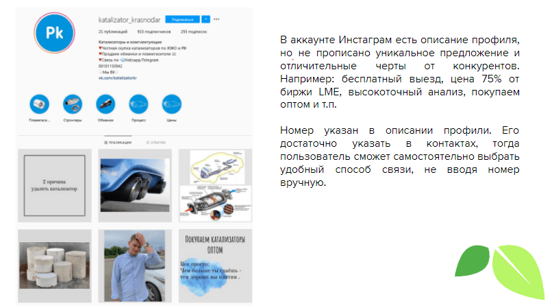 На старте нашей работы мы определились с выбором социальной сети - инстаграм. Именно им активнее всего продвигались конкуренты, хотя у большинства параллельно также был развит и ВКонтакте, но использовался больше для дублирования постов. Затем мы выявили, что аудитория активнее всего реагирует на предложения по конкретным автомобилям, демонстрацию установки / снятия запчастей, полезную информацию о катализаторах , а также на проведение конкурсов и розыгрышей.