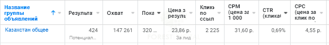 Общие итоги рекламных кампаний для двух площадок и всех задействованных городов России и Казахстана.