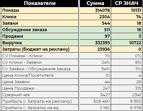 - Ежедневно отслеживайте эффективность работы рекламы. Сделайте хотя бы обычную воронку продаж в Excel, а если есть возможность, то подключите сквозную аналитику.